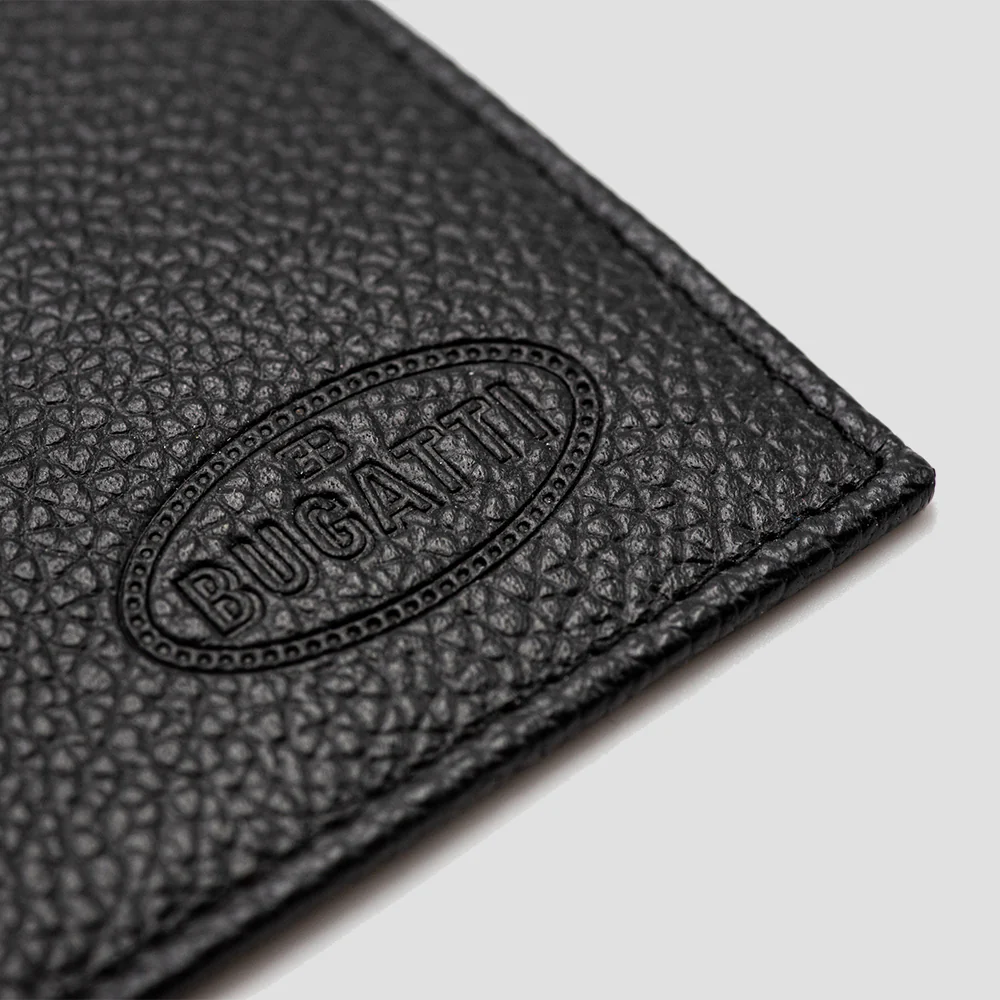 The Bugatti Wallet is a luxurious accessory crafted from 100% hammered leather, offering a distinctive textured finish. Featuring the iconic Bugatti branding, it provides ample space for cards and cash while maintaining a sleek, sophisticated profile. Perfect for those who appreciate premium craftsmanship and timeless style.