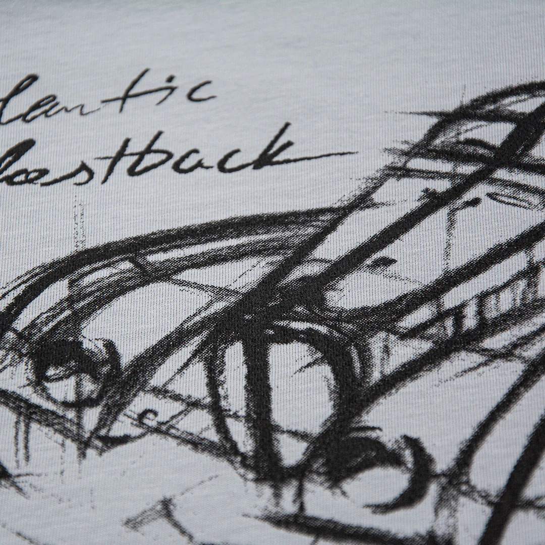 This grey, short-sleeved graphic T-shirt features a small Atlantic sketch on the front, and larger on the back. this shirt is a blend of automotive heritage and contemporary design. Made from 100% cotton.